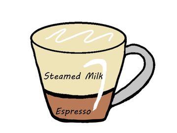 equal parts steam milk, espresso, & foam with caramel or chocolate